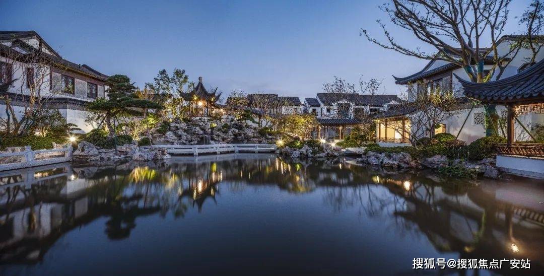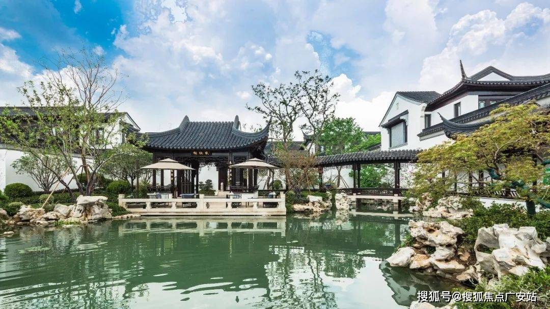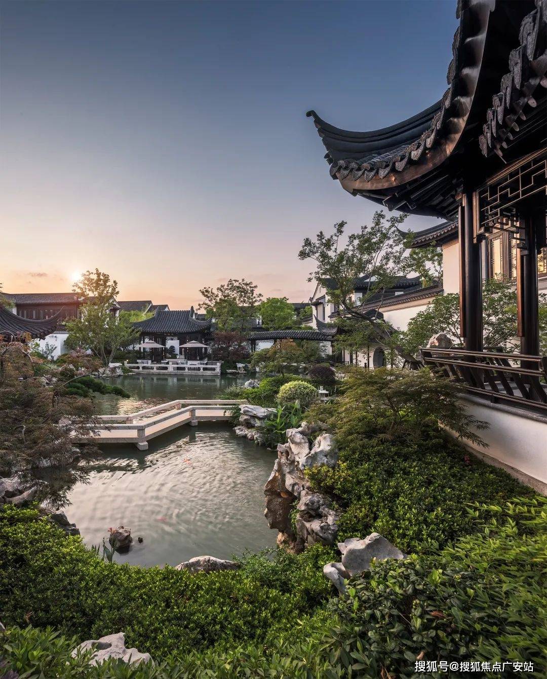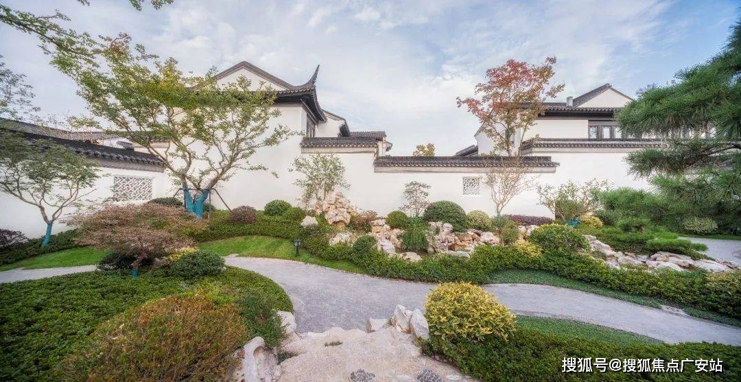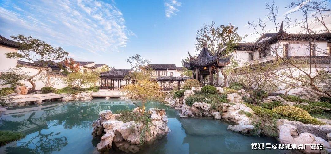 园内设置七处景观组团,以中国各大古典名园为借鉴,并融入宋代的雅致生活韵味。宋式园林更强调“精而造疏,简而意足”,擅以意山水画为蓝本、以画设景,诗词为主题。步履其中,移步换景,步步生趣。花园组团规模扩大,户户有景,各自成趣,或临廊听雨,或观亭赏风,居住更为诗意。