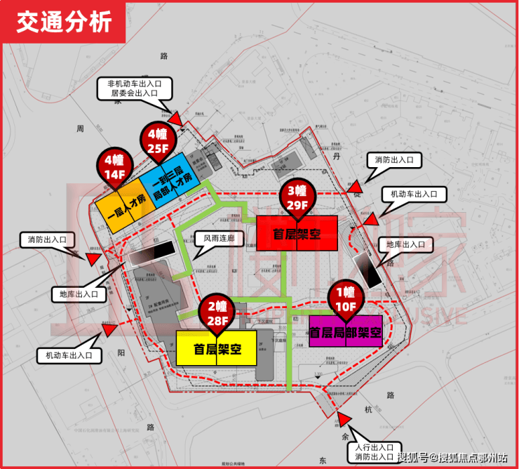 6.全社区人车分流,归家流线风雨无阻:地面零车位且地库出入口皆位于机动车出入口附近,机动车一进社区即可下地库,真正实现人车分流;风雨连廊更是贴心连接每栋入户门,归家仪式感拉满.