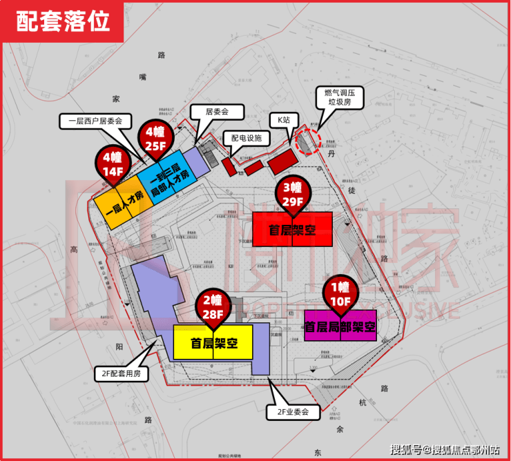7.服务配套设置集中,不利配套远离住宅且位置隐蔽:社区的配套用房主要分布于2幢底层沿街建筑中,部分位于4幢首层;垃圾房、燃气调压站、K站以及配电设施等一系列不利配套均被设置在了地块北部的角落中,将对住宅建筑的不利影响减至最小化!