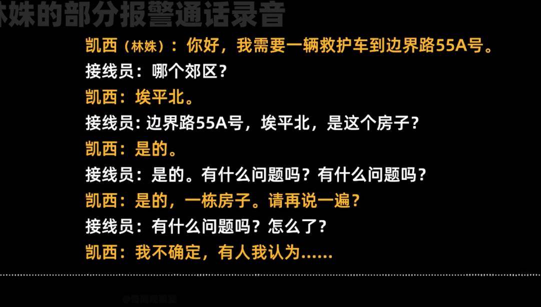当聊到案发当天凌晨谢连斌的活动轨迹时,林姝对谢连斌说道:“我当时睡着了,我怎么知道你有没有去外面散步?”。