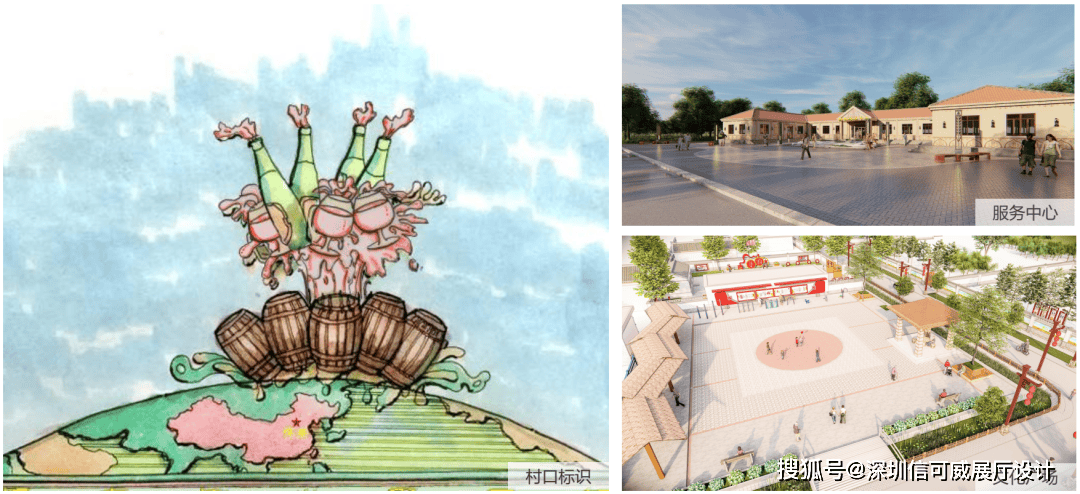 结合临河进步村的文化特色—河套文化、民俗文化及产业特色打造整个村庄的形象入口,形象入口作为整个村庄的核心标识物之一,承担景观功能的同时承担形象展示、客流集散、综合服务等功能。