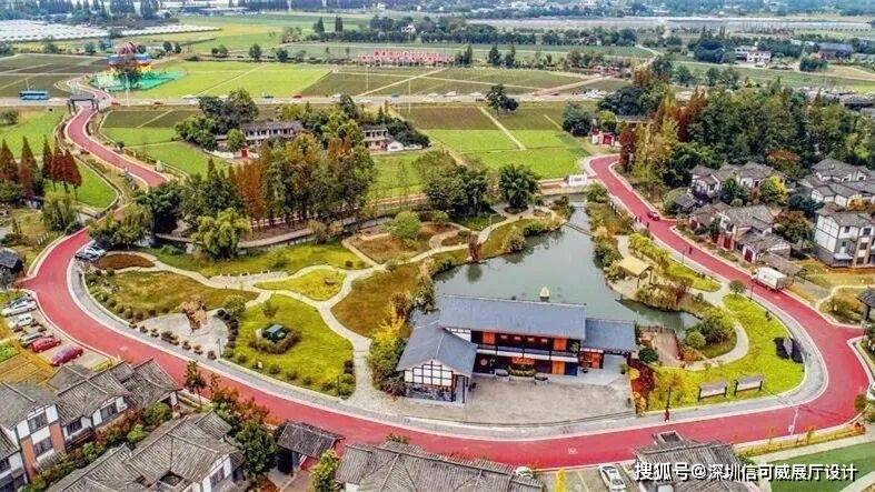 读道文旅规划设计团队构建“一环两心三片区”的空间结构,即田园绿道产业景观带,两心为谢家院子综合接待核心、七彩菜园景观吸引核心,三片区为入口综合服务区、七彩菜园产业区、田园研学旅游区。规划探索出三体共建、五业共融、居游共享的乡村振兴“三共模式”,成为四川省以川西林盘文化为代表的特色乡村振兴典范区。