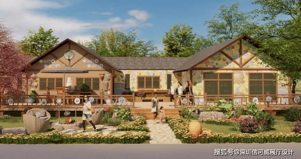 52内蒙古突泉向日葵公社项目以赛银花村为基本空间,进行以“向日葵”为主题的村庄打造,植入综合服务、休闲娱乐等服务功能和旅游产品,同时对村落居民进行主题改造,作为精品民宿满足游客住宿功能。在赛银花村入口区设置音乐文化广场,广场中央设置标志性景观雕塑——向日葵IP主题形象。建筑体量与村落整体形象相契合,外观设计追求“自然、田园野趣”。其功能主要为游客提供及时、准确的服务,包括咨询、宣传、导游、休憩、医疗服务、代客购票功能。读道文旅规划设计团队以向日葵IP主题形象为蓝本,设置一处大型主题景观雕塑,作为村庄的标志,一方面使得村庄拥有明确的形象标志,可快速形成品牌,打出知名度,另一方面将其设置在入口区,提高了形象辨识度,使得游客更容易找到村庄位置,提高交通可达性与可进入性。