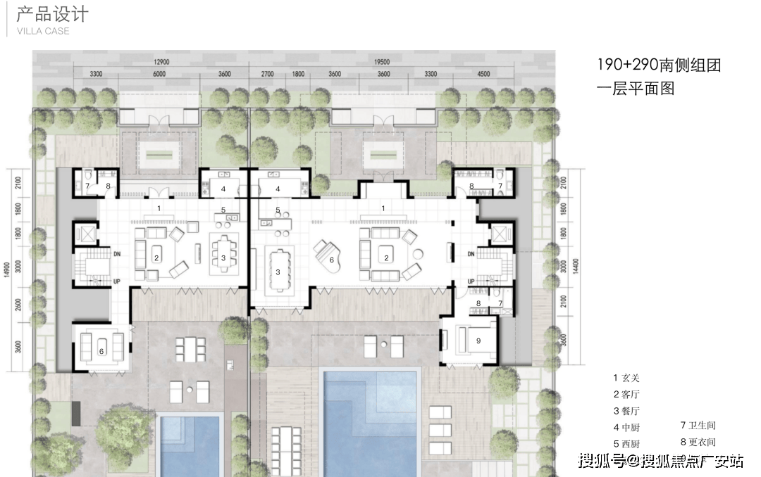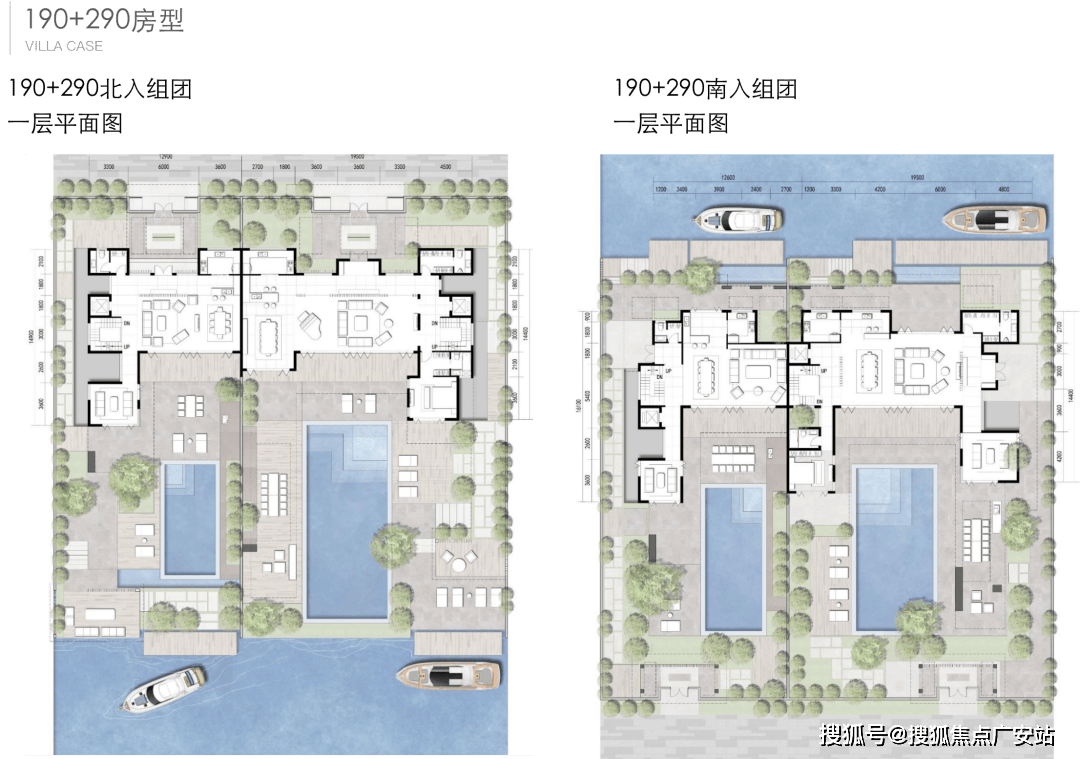 北入户的190+290房型,一层朝南直面庭院和泳池,如果配上整扇的落地玻璃移门......