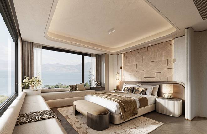 规划270°转角客厅、主卧转角窗,将山海盛景与园林风光尽收眼底,日常起居升华为持续进行的风景鉴赏,每一扇窗都成为自然的画框。