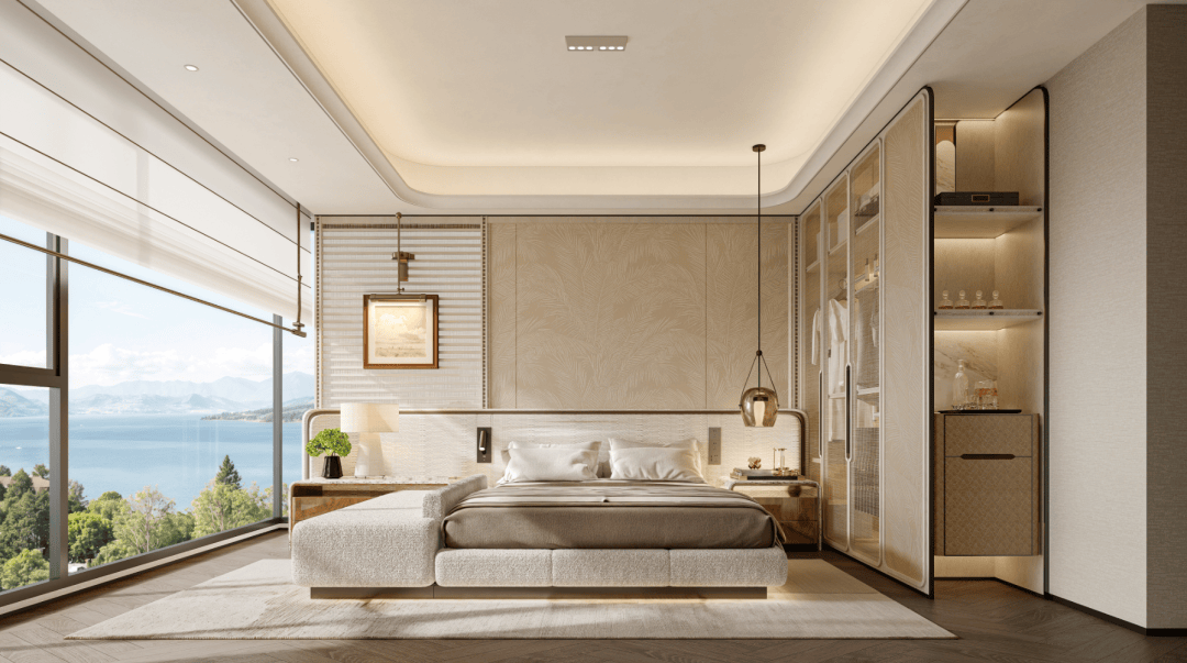 至高约38.76m²主卧,搭配步入式衣帽间、全明卫浴,‬以奢阔的空间尺度,营造酒店套房般的尊崇体验。