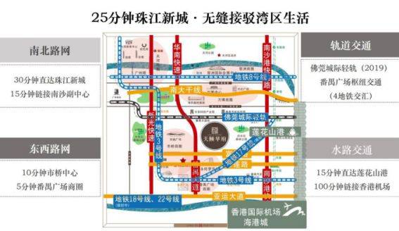 地铁:3 号线 分钟车程)、市桥地铁站(10 分钟车程) 自驾车:珠江新城至项目(25 分钟):珠江新城-华南快速-番禺大道—富怡路