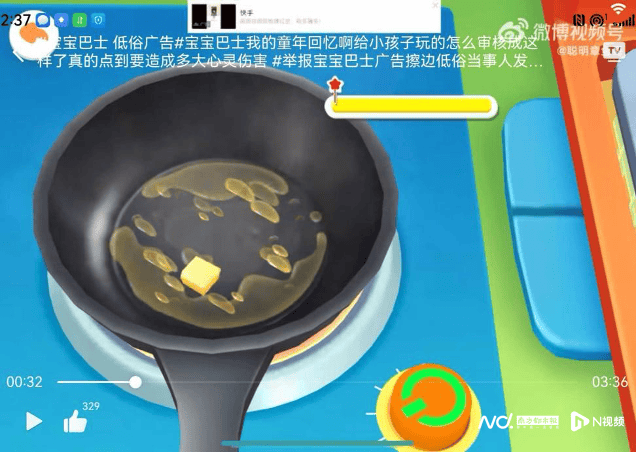 南都记者留意到,宝宝巴士“低俗广告”曝光后,多位家长上传了宝宝巴士其他APP弹窗的相关视频。一网友发布的录屏视频显示,宝宝巴士旗下的宝宝小厨房APP,小朋友体验切菜、炒菜等厨房操作过程中,仅短短3分35秒,手机上方的弹窗广告就出现了8次,多为成人短剧、短视频平台、购物、领红包等内容广告。