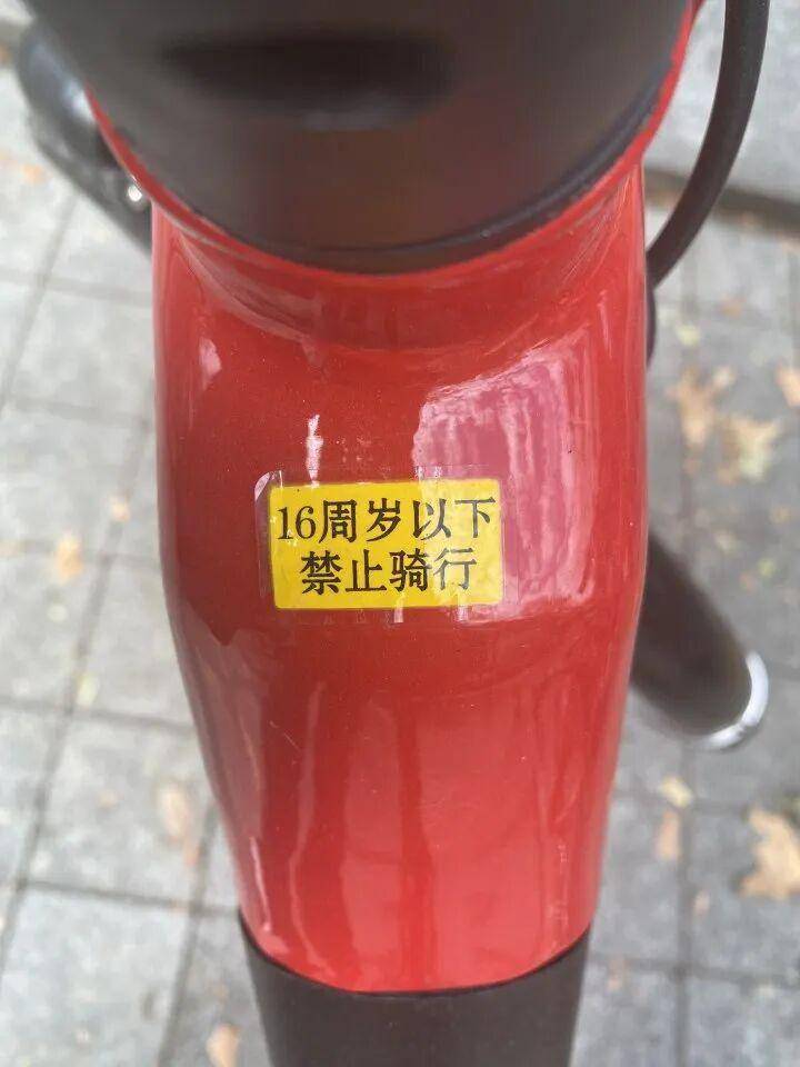 这些新上线的助力小红车车上还有骑行的相关提醒。比如印有“16周岁以下禁止骑行”“紧急制动时先使用后闸、随机使用前闸辅助制动”等说明。