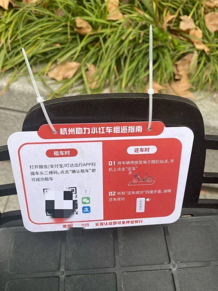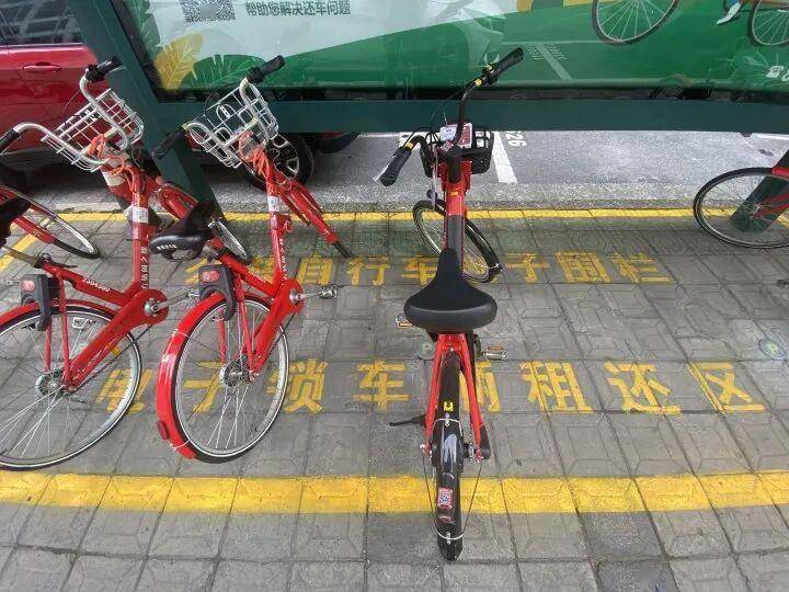另外,这批新车黑色下管比普通的小红车要粗些,车筐上有相关租车指南,可以通过支付宝等APP扫描。还车时,需要将车辆停放至电子围栏站点,手机上点击“还车”,当听到“还车成功”时,说明还车成功。