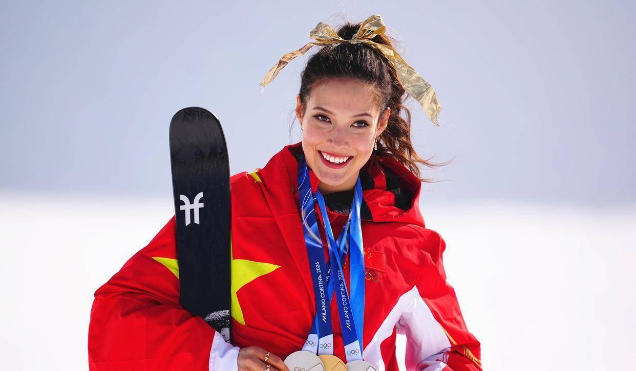 在所有这些获奖运动员中,22岁的谷爱凌无疑是将竞技成绩转化为商业效益的顶级高手。 2026年2月22日下午,意大利利维尼奥的雪山上,谷爱凌稳稳落地,拿下了女子U型场地技巧的金牌,成功卫冕。 这是她个人第六枚冬奥奖牌,她在本届冬奥会共获得1金2银。