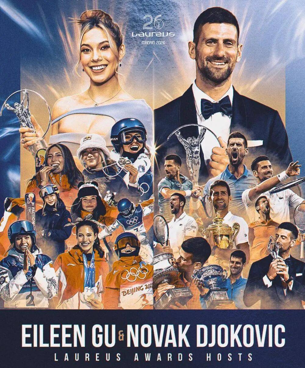 劳伦斯世界体育奖宣布,中国自由式滑雪运动员谷爱凌将与塞尔维亚网球名将诺瓦克·焦科维奇共同担任2026年劳伦斯世界体育奖颁奖典礼主持人。该典礼20日将在西班牙马德里举行。